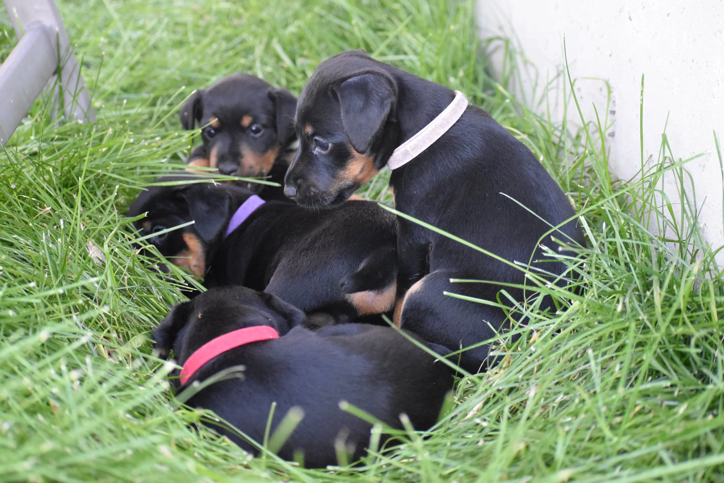 Puppies from both Mini and Zelda enjoying some outdoor time